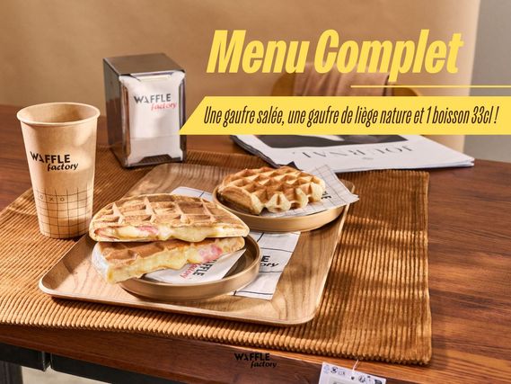 Dans tous les restaurants Waffle Factory, notre offre pour vous régaler le midi est complète ! Tout comme notre Menu Complet qui se compose d'une gaufre salée, d'une gaufre de Liège nature et d'une boisson 33cl. De quoi faire le plein d'énergie et de gourmandise en ce lundi midi 🤭😁